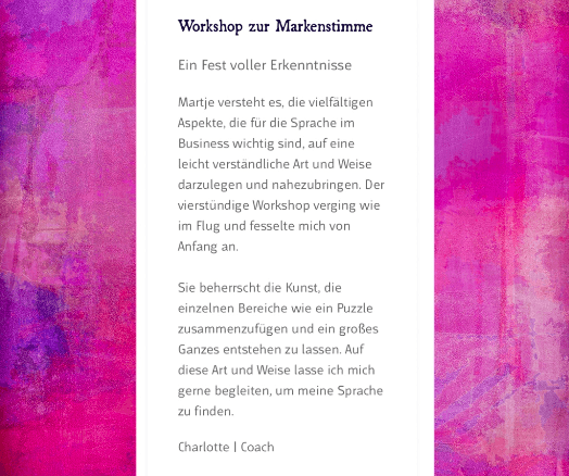 Wenn du lernen möchtest, wie du die Infos aus deinem Human Design Chart für deine Markenstimme nutzen kannst, sehen wir uns gleich im Workshop 🙌